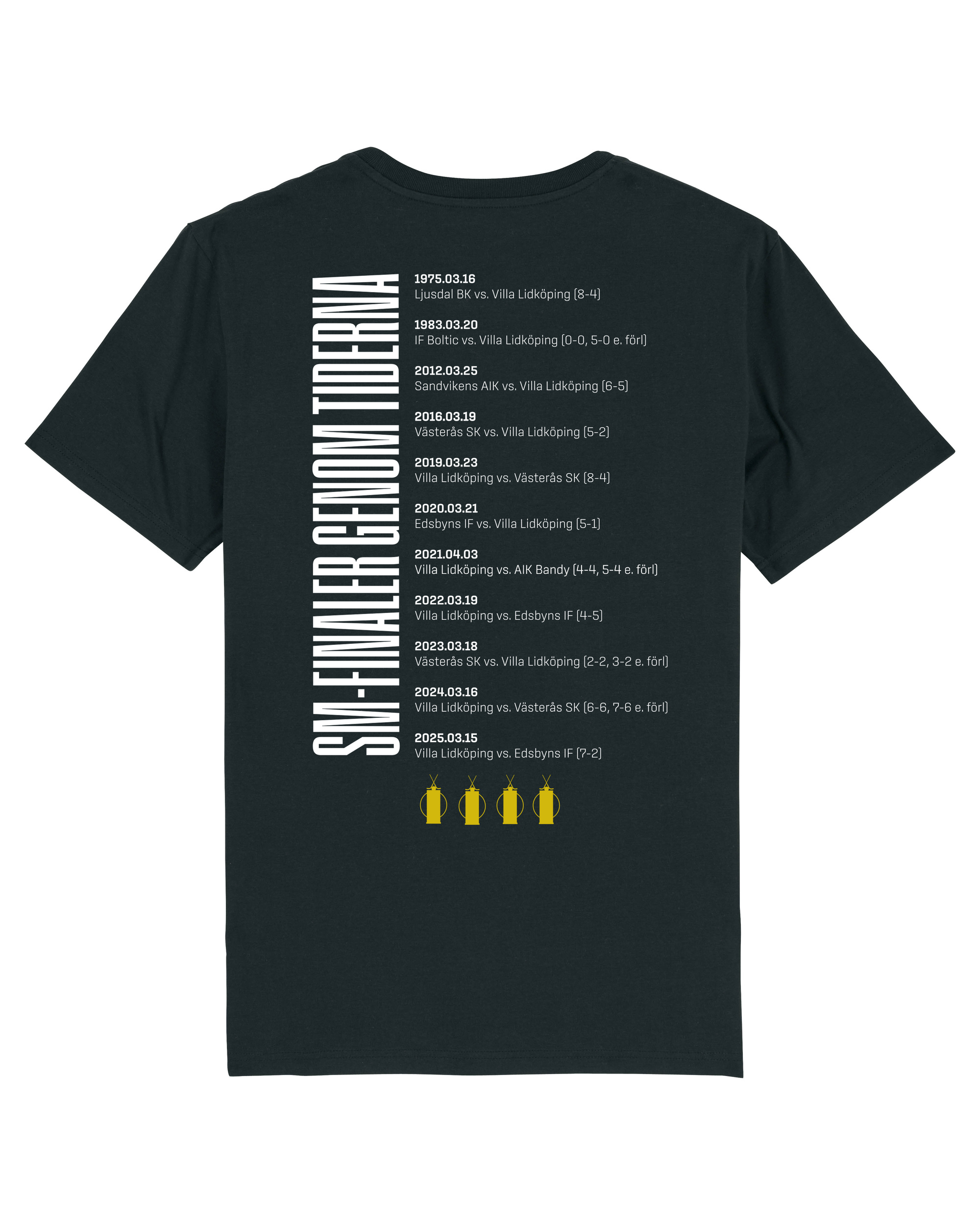 Tshirt tryckt med det gamla klubbmärket, samt alla finaler vi spelat genom åren.